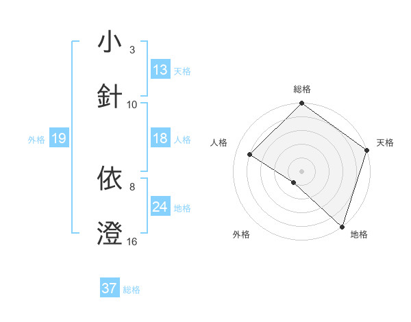 小針 依澄さんの総格は37画の5点!