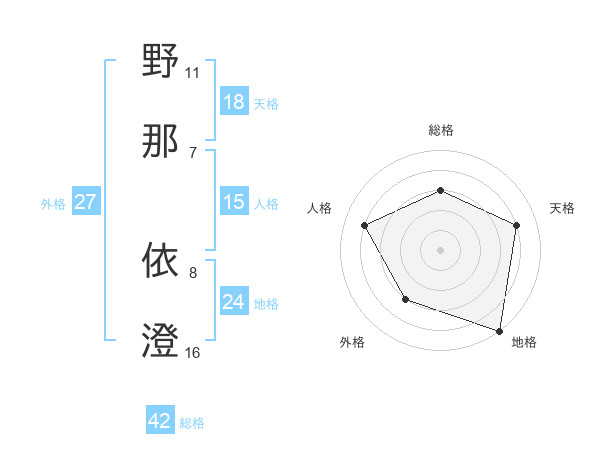 野那 依澄さんの総格は42画の3点!