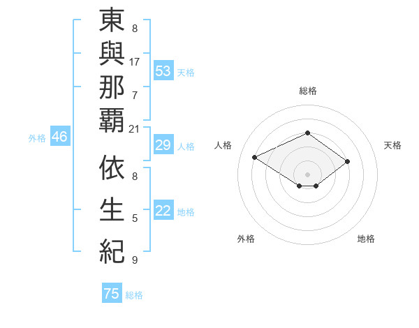 東與那覇 依生紀さんを姓名の画数から五運を鑑定