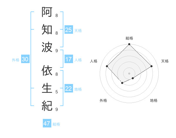 阿知波 依生紀さんを姓名の画数から五運を鑑定
