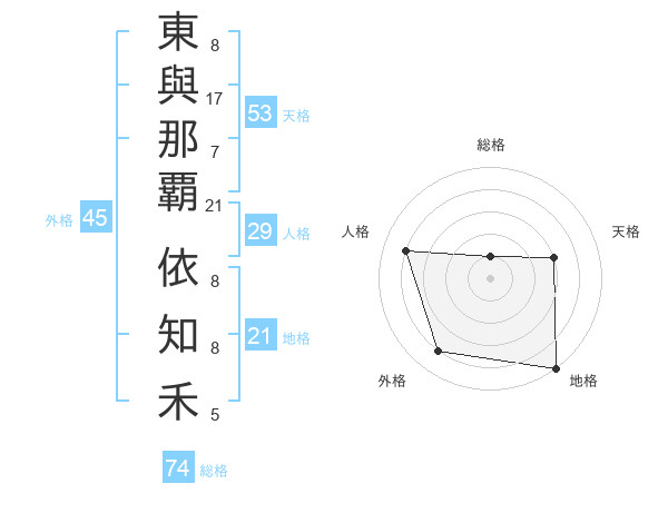 東與那覇 依知禾さんを姓名の画数から五運を鑑定