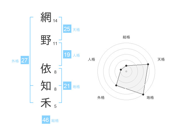 網野 依知禾さんを姓名の画数から五運を鑑定