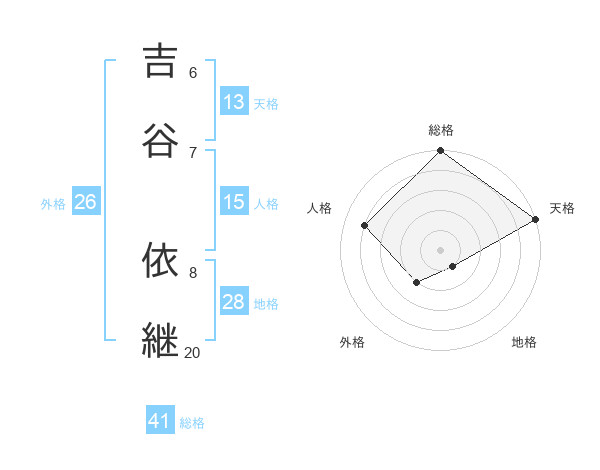 吉谷 依継さんの総格は41画の5点!