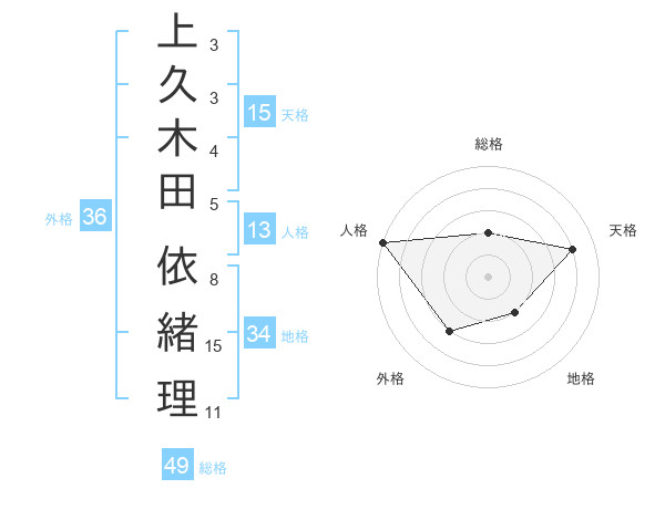 上久木田 依緒理さんを姓名の画数から五運を鑑定