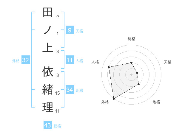 田ノ上 依緒理さんを姓名の画数から五運を鑑定