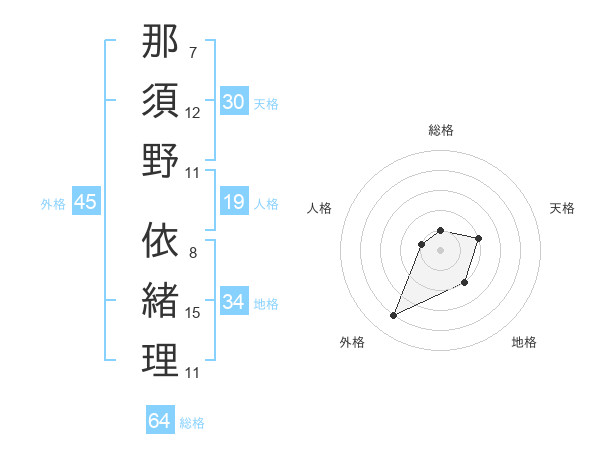 那須野 依緒理さんを姓名の画数から五運を鑑定