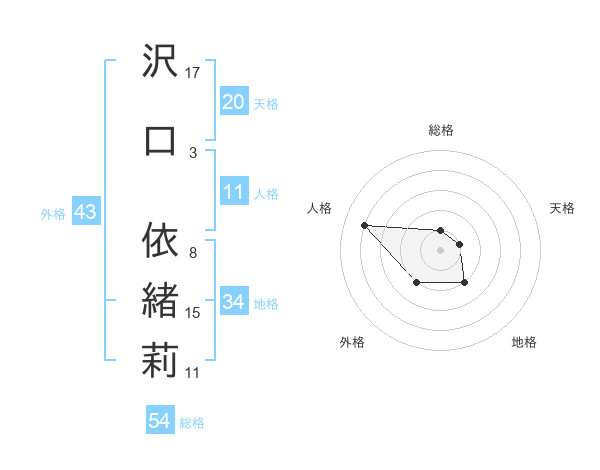 沢口 依緒莉さんを姓名の画数から五運を鑑定