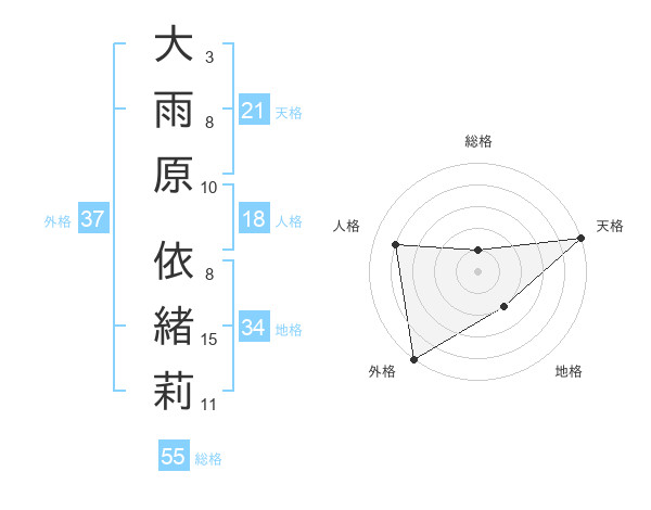 大雨原 依緒莉さんを姓名の画数から五運を鑑定