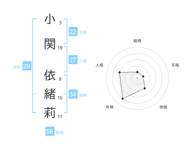 小関 依緒莉さんを姓名の画数から五運を鑑定