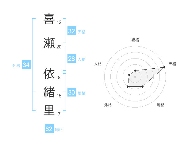 喜瀬 依緒里さんの天格は32画の5点