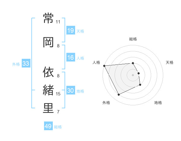 常岡 依緒里さんを姓名の画数から五運を鑑定