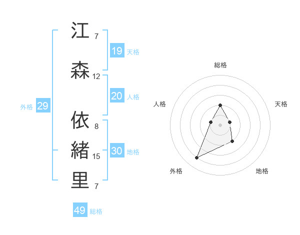 江森 依緒里さんの総格は49画の2点!