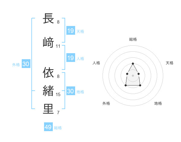 長﨑 依緒里さんの総格は49画の2点!
