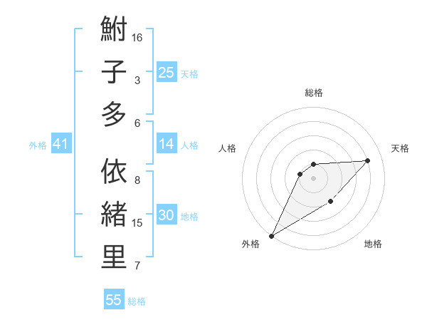 鮒子多 依緒里さんを姓名の画数から五運を鑑定