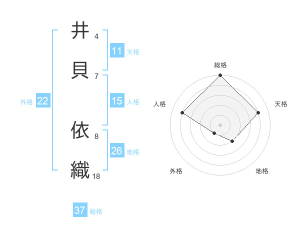 井貝 依織さんの総格は37画の5点!