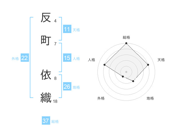 反町 依織さんの総格は37画の5点!