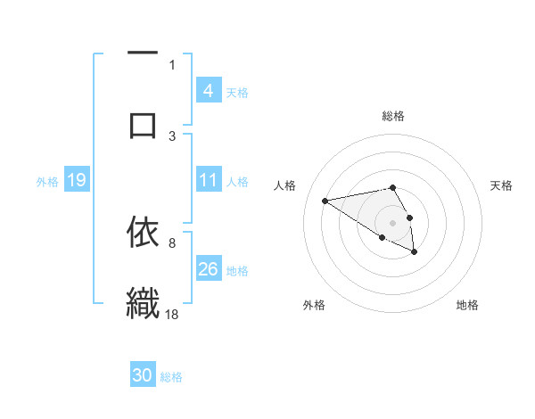 一口 依織さんの総格は30画の2点!
