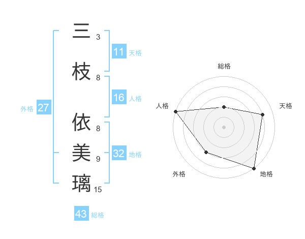 三枝 依美璃さんを姓名の画数から五運を鑑定
