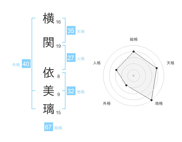 横関 依美璃さんを姓名の画数から五運を鑑定