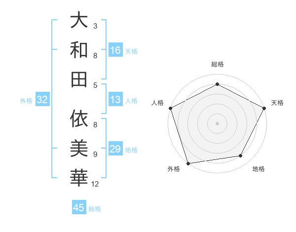 大和田 依美華さんを姓名の画数から五運を鑑定