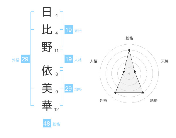 日比野 依美華さんを姓名の画数から五運を鑑定