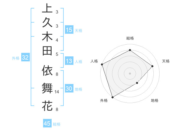 上久木田 依舞花さんを姓名の画数から五運を鑑定