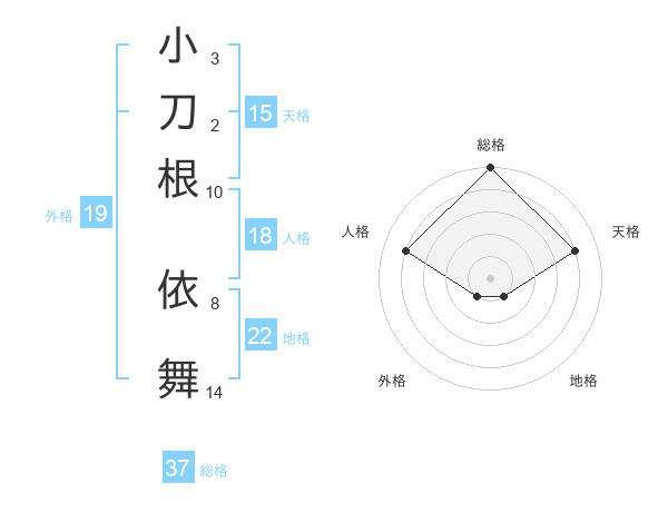 小刀根 依舞さんの総格は37画の5点!