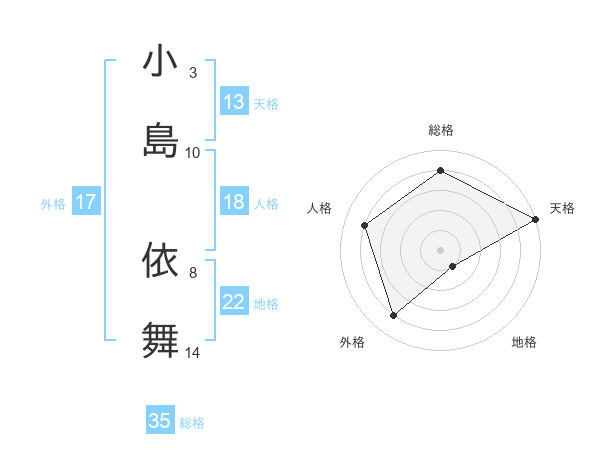 小島 依舞さんの天格は13画の5点!