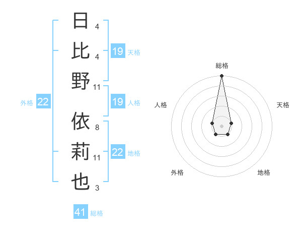 日比野 依莉也さんを姓名の画数から五運を鑑定