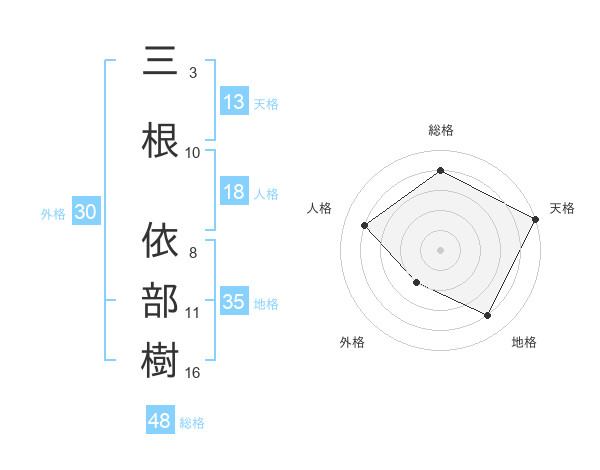 三根 依部樹さんを姓名の画数から五運を鑑定