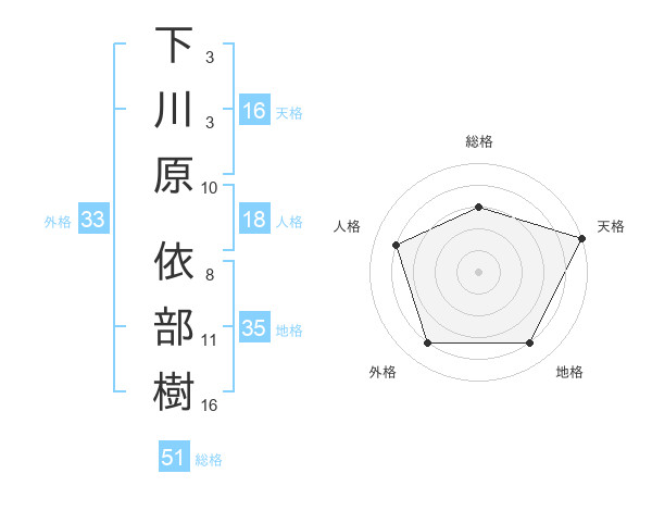 下川原 依部樹さんの総格は51画の3点