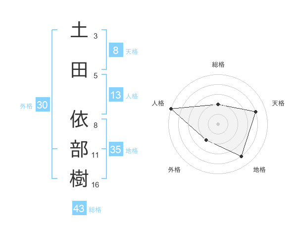 土田 依部樹さんの総格は43画の2点!