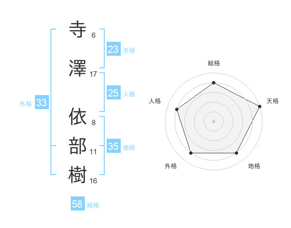 寺澤 依部樹さんを姓名の画数から五運を鑑定