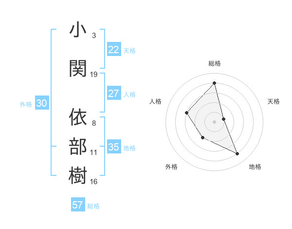 小関 依部樹さんを姓名の画数から五運を鑑定