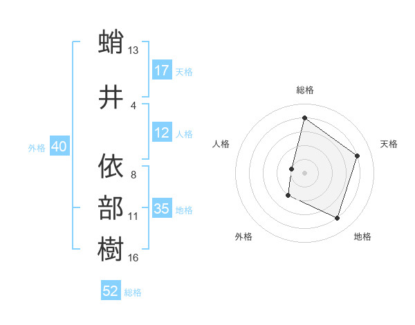 蛸井 依部樹さんの総格は52画の4点!