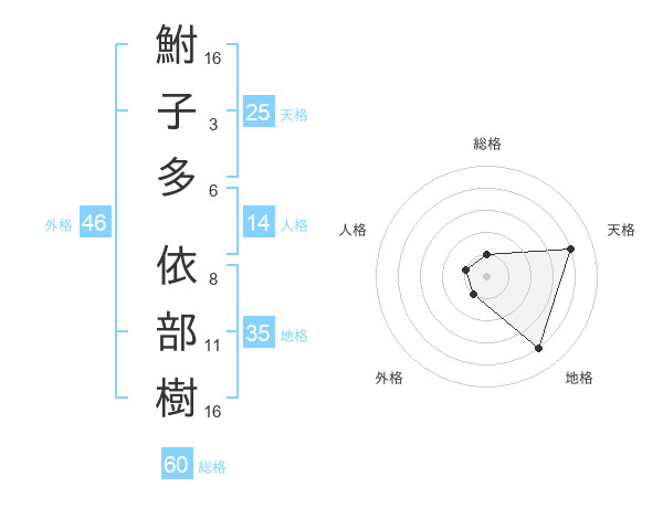 鮒子多 依部樹さんの総格は60画の1点!