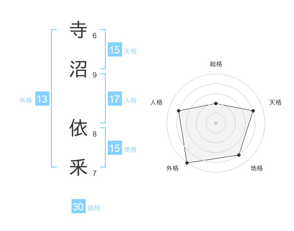 寺沼 依釆さんを姓名の画数から五運を鑑定