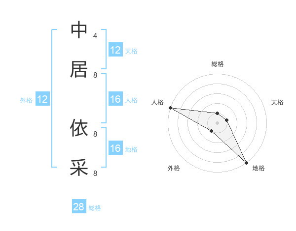 中居 依采さんの外格は12画の1点!