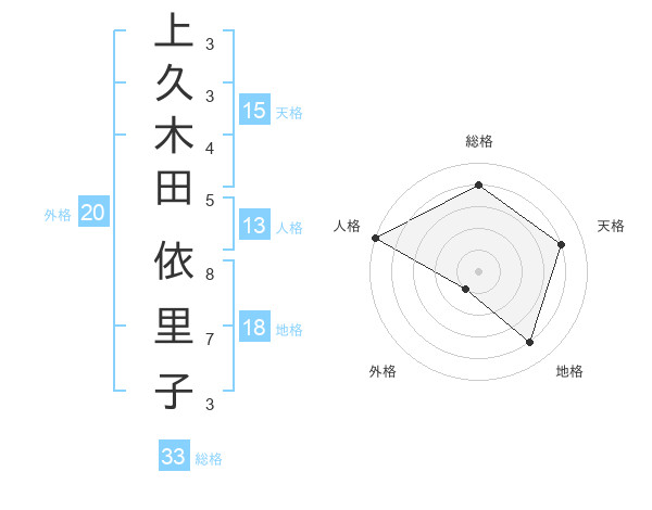 上久木田 依里子さんを姓名の画数から五運を鑑定