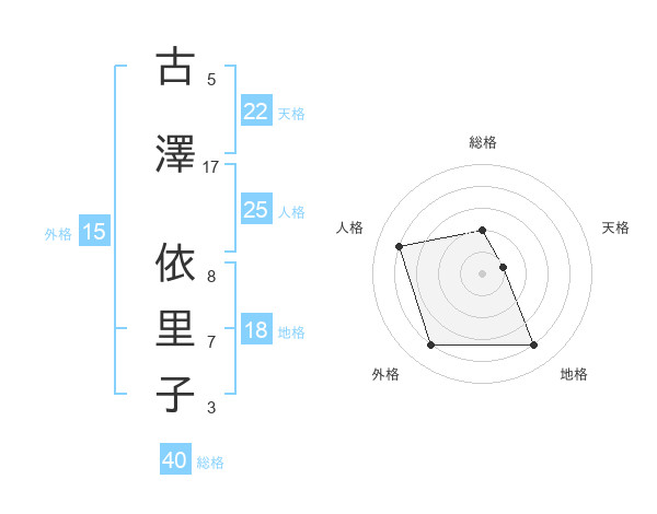 古澤 依里子さんを姓名の画数から五運を鑑定