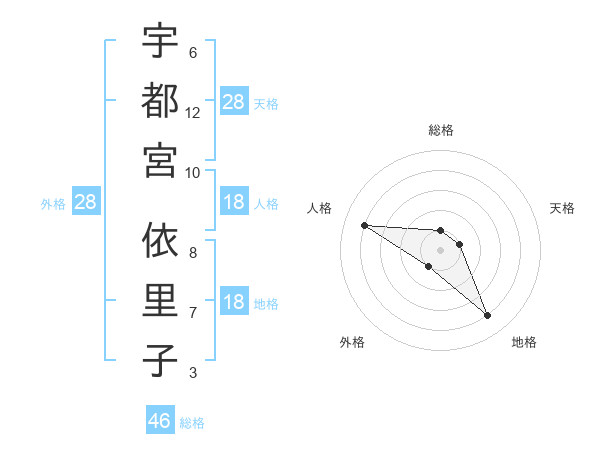 宇都宮 依里子さんを姓名の画数から五運を鑑定