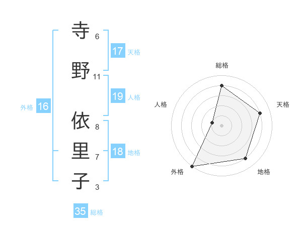 寺野 依里子さんを姓名の画数から五運を鑑定