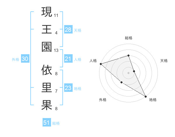 現王園 依里果さんを姓名の画数から五運を鑑定