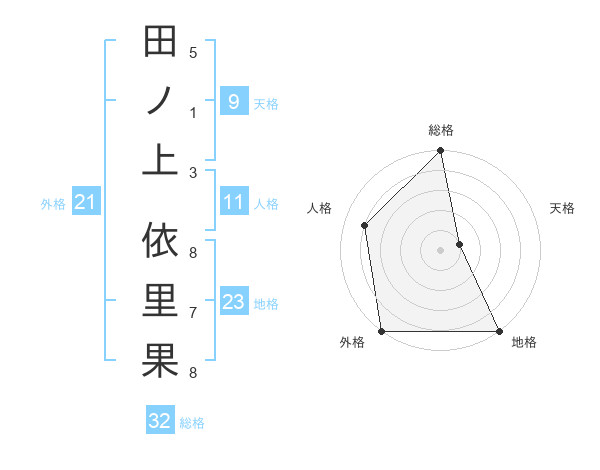 田ノ上 依里果さんの総格は32画の5点!