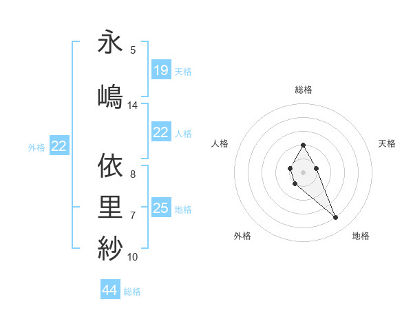 永嶋 依里紗さんを姓名の画数から五運を鑑定