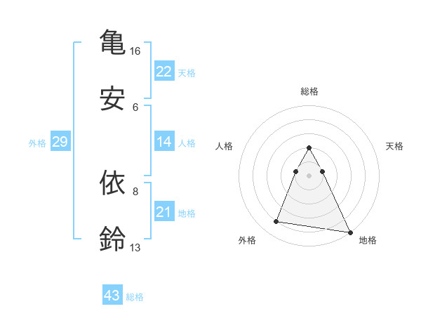 亀安 依鈴さんの総格は43画の2点!