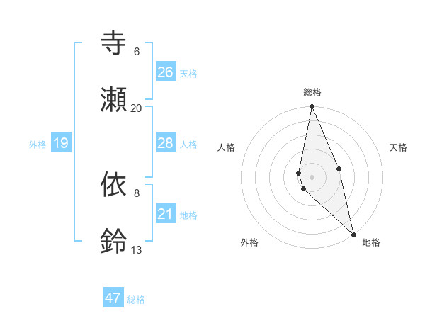 寺瀬 依鈴さんを姓名の画数から五運を鑑定