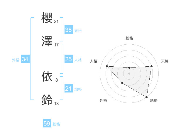 櫻澤 依鈴さんを姓名の画数から五運を鑑定