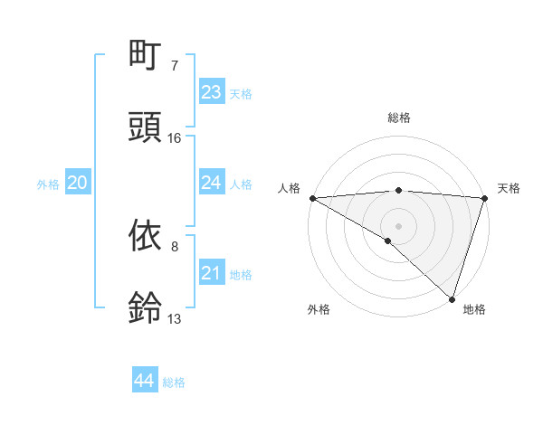 町頭 依鈴さんの総格は44画の2点!