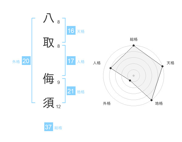 八取 侮須さんの総格は37画の5点!